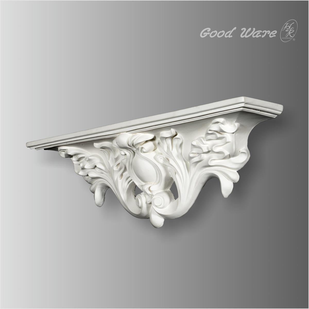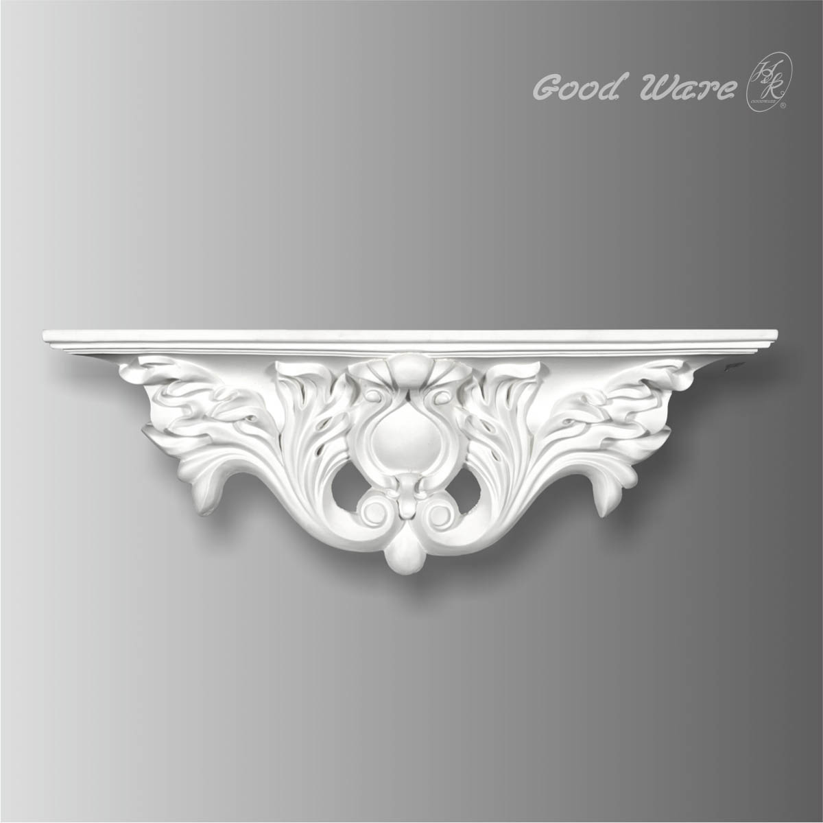 Polyurethane antique decorative wall brackets for shelves, 7-7/8”H X 23-13/16”W X 4-5/16”W in size. This shelving is truly unique in design and function. Primarily used in decorative applications urethane shelves can make a dramatic difference in kitchens, bathrooms, entryways, fireplace surrounds and more. With these shelves, you are only limited by your imagination. All our Goodware moldings are pre-primed and customized.