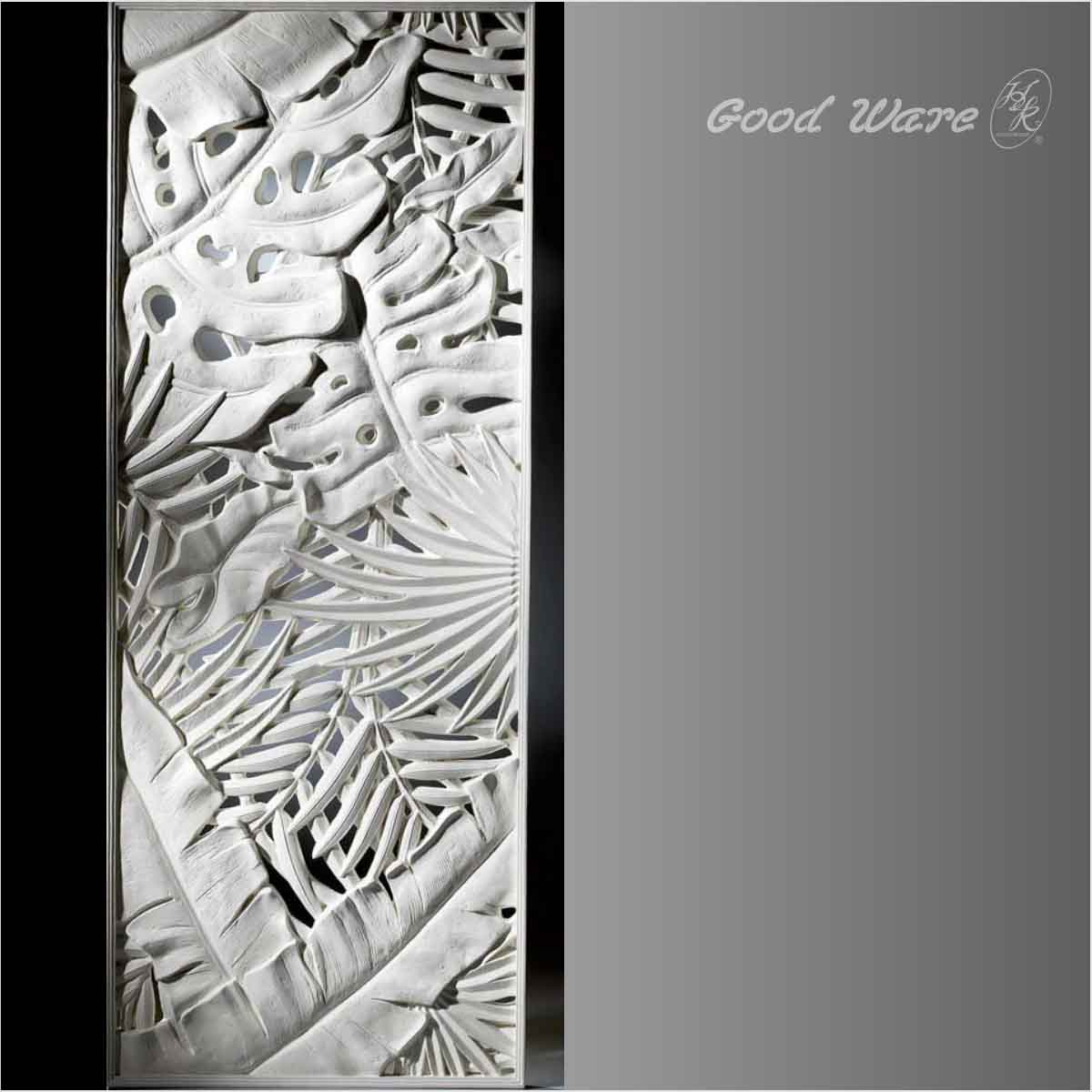 Architectural interior wall dividers for sale, 87”L X 34”W X 2”D in size. As the right section of WE-2509, this paneling crafts kinds of leaves with detailed touch. The unique characteristic of piercing paneling determines the stunning visual effect it will bring. The application of this paneling is either independent or pair with the central section. Our H&K Goodware carved panelings are open to be customized.