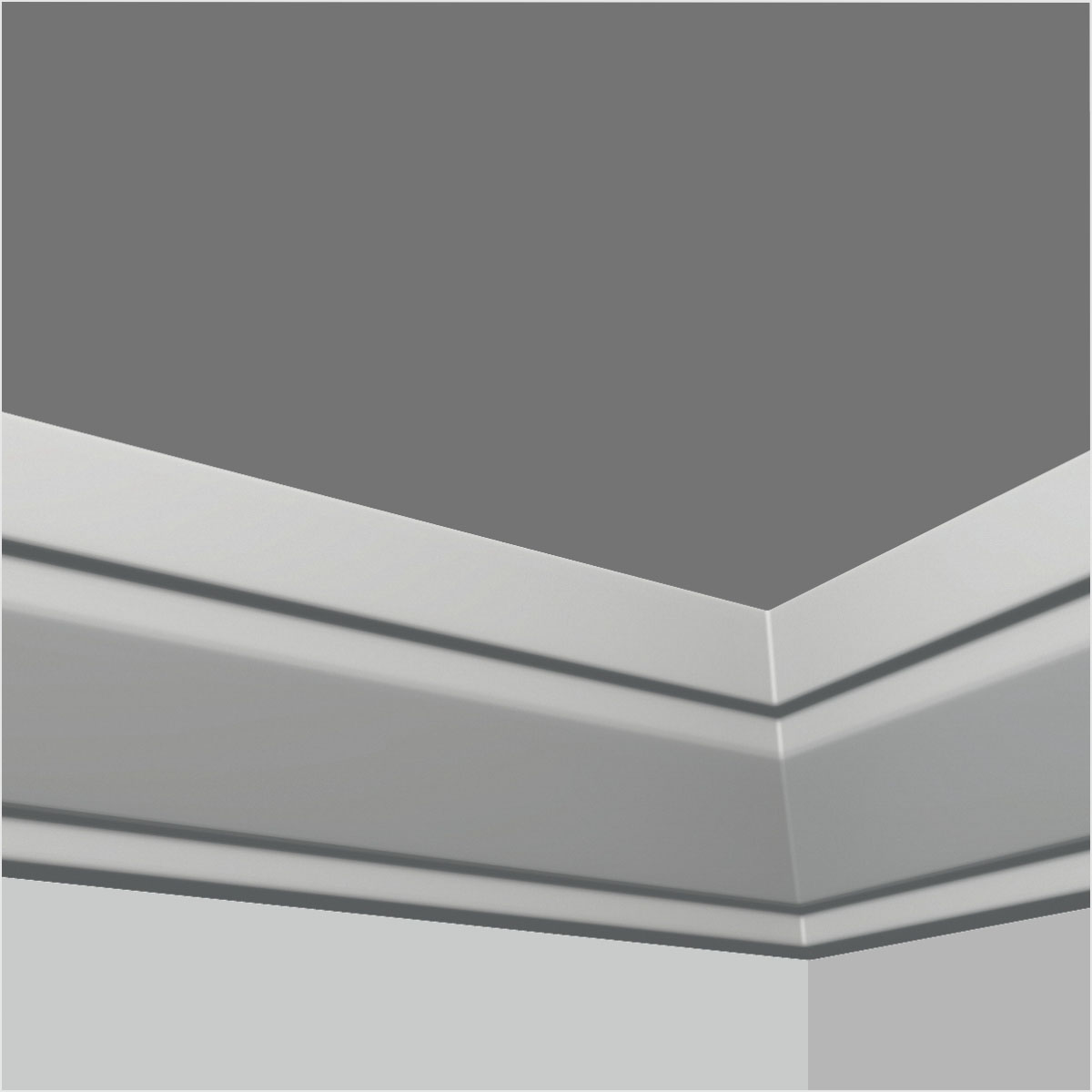 Polyurethane classic simple crown moulding in kitchen, typical three sections all carved in stright lines or square forming an overall sense of integrity and coherence. This small profile molding is made of polyurethane compound which is mre durable while more light in weight than woods. All our Goodware moldings are pre-primed and customized.