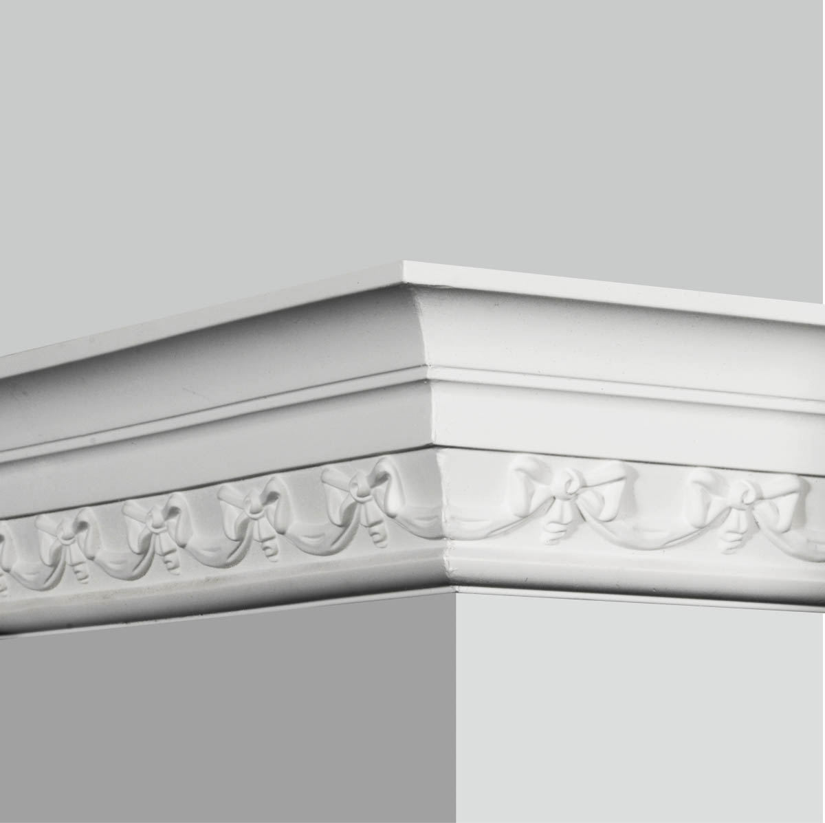 Decorative crown moulding is 3-3/16”H X 2-1/8”W X 94-1/2”L in size with a breadth 3-13/16”and flower:1-13/8”. This decorative crown moulding manufacturers adopts a triple layers design upon which knot-connected flowers are in rich details and exquisitely carved and combines a stepped climbing curl. As a repudiated crown moulding manufacturers,all our Goodware moldings are pre-primed and customized.