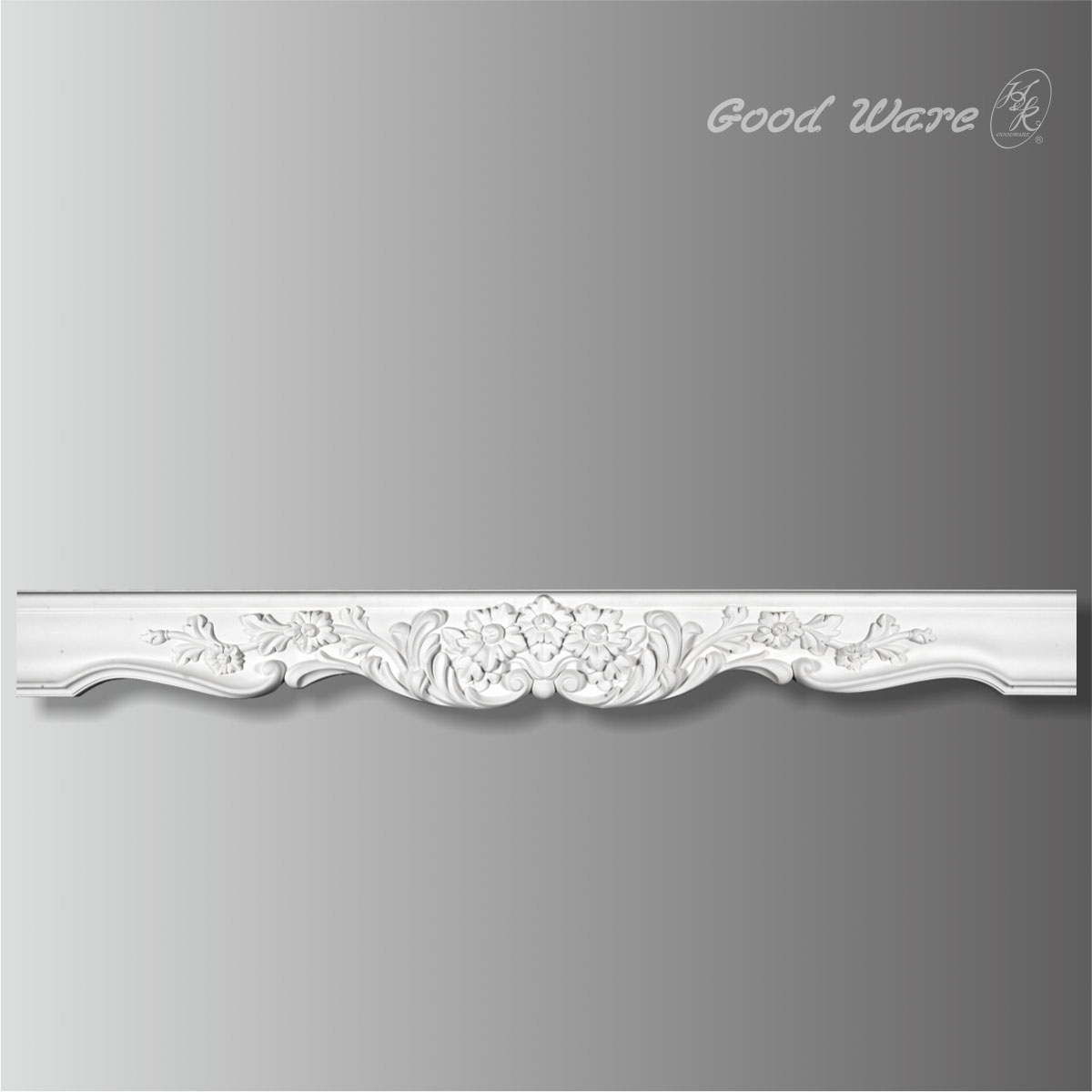 Polyurethane decorative floral window moulding for sale, 6-11/16”W X 1-15/16”D X 84-13/16”L X 34-5/8”F in size. This wide range ornamental window&door surround spreads gorgeous and elegant flowers in fabulous details making this molding extremely decorative. This pelmet can be applied to decorate windows or doors in combination with lintels like GD-301 and HK moldings. Our H&K Goodware doors & windows surrounds are open to be customized.