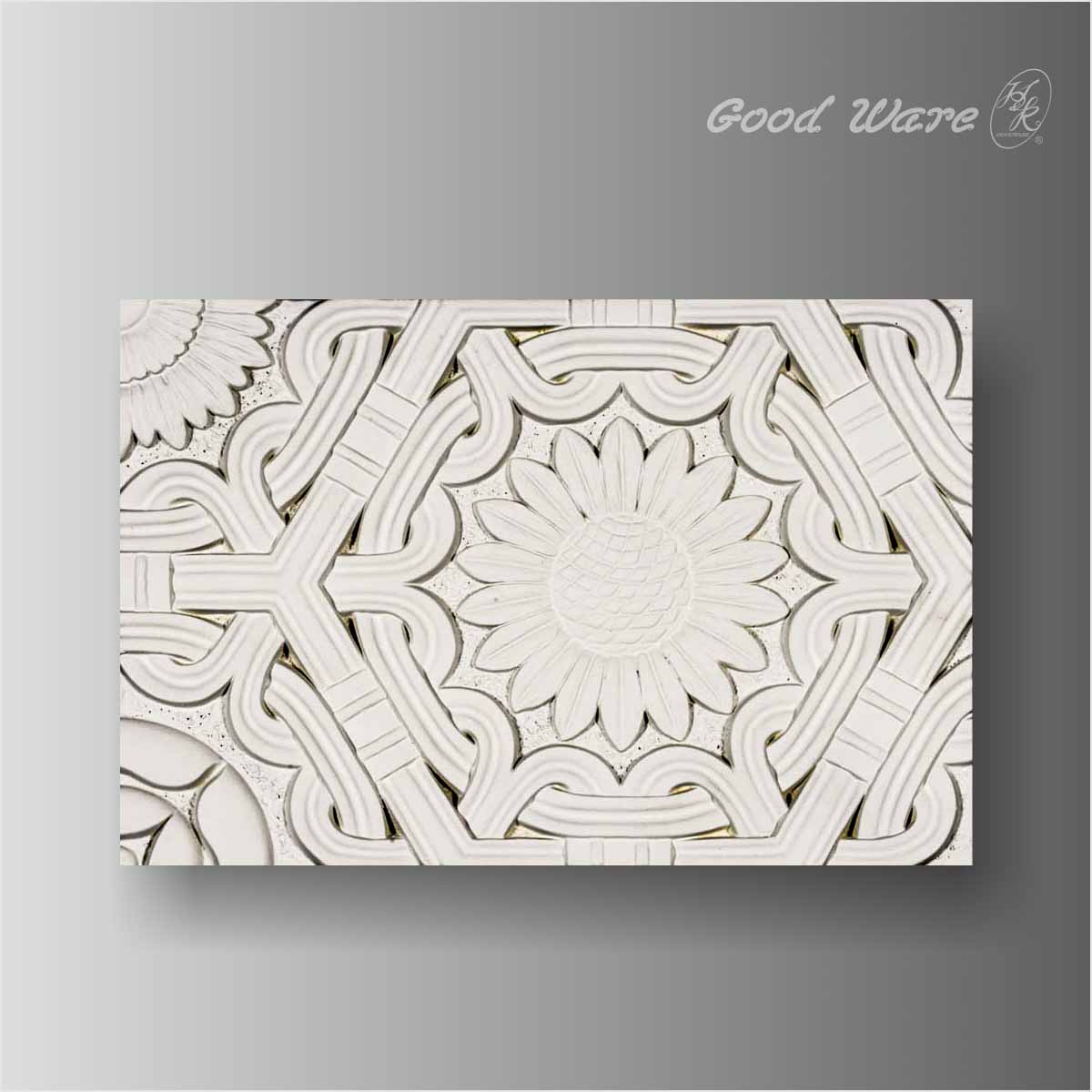 Decorative polyurethane panel sheets for walls, 11-13/16”L X 7-7/8”W X 13/16”D in size. This relief wall panel belongs to the supplementary panels which demonstrates a sunflower radiant with auspicious curves in elegant and intricate details. The relief wall panels can always make the best combined with other panels when it comes to innovative the flat and ordinary walls, ceilings of your apartment to fabulous spaces. Our H&K Goodware relief wall panels are open to be customized.