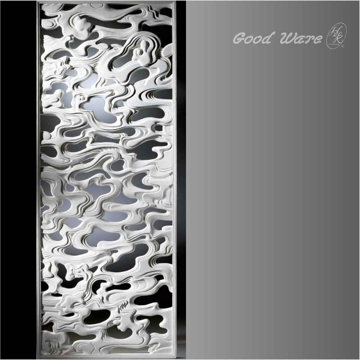 Decorative white room panel dividers for sale, 87-1/4”L X 34”W X 2”D in size. This paneling belongs to our original creation series and it is designed with the Chinese imaginary natural factor: wind. This piercing paneling can be applied with other from this series or the same model to achieve coherent elegant signatures and fabulous acoustic-optic effect.Our H&K Goodware carved panelings are open to be customized.
