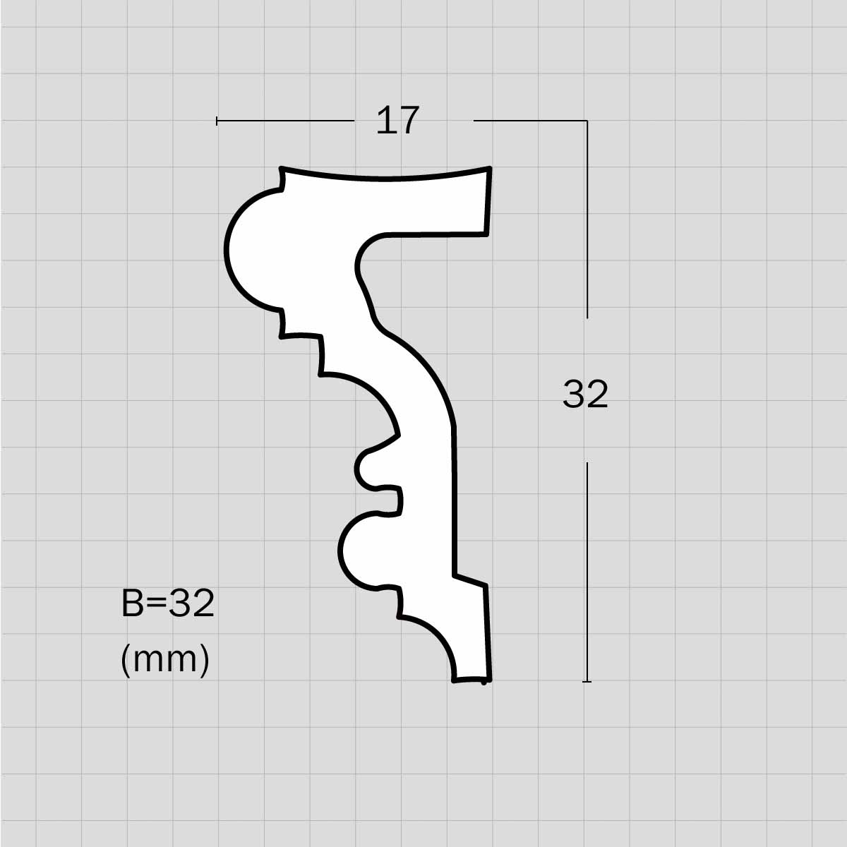 Flexible decorative corner molding, 96-11/16”L X 1-1/4”H X 11/16”D in size. Flexible moulding is cheaper and quicker to produce than comparable radius wood moulding. Seamless construction without lamination defects. We are constantly adding to our inventory and can reproduce virtually any flexible moulding you may need.