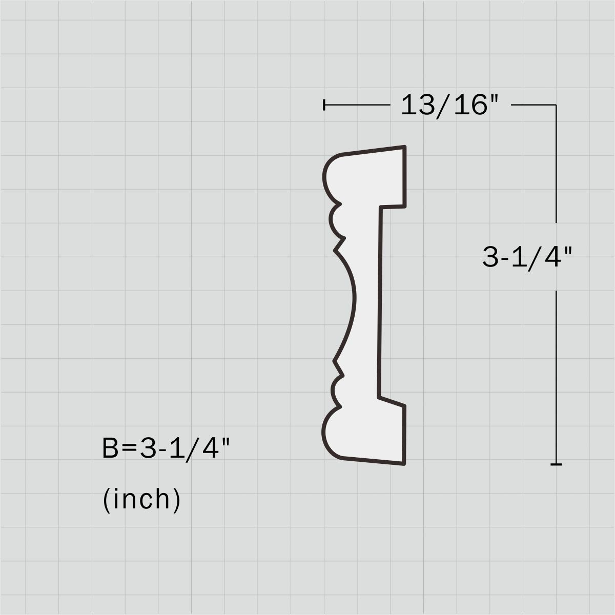 Polyurethane interior decorative window molding for sale, 3-1/4”H X 13/16”W X 94-1/2”L in size. This small profile molding is designed with classic multiple sections model placing a cove with multiple steps on both sides creating a transitional ornament. All our Goodware moldings are pre-primed and customized.