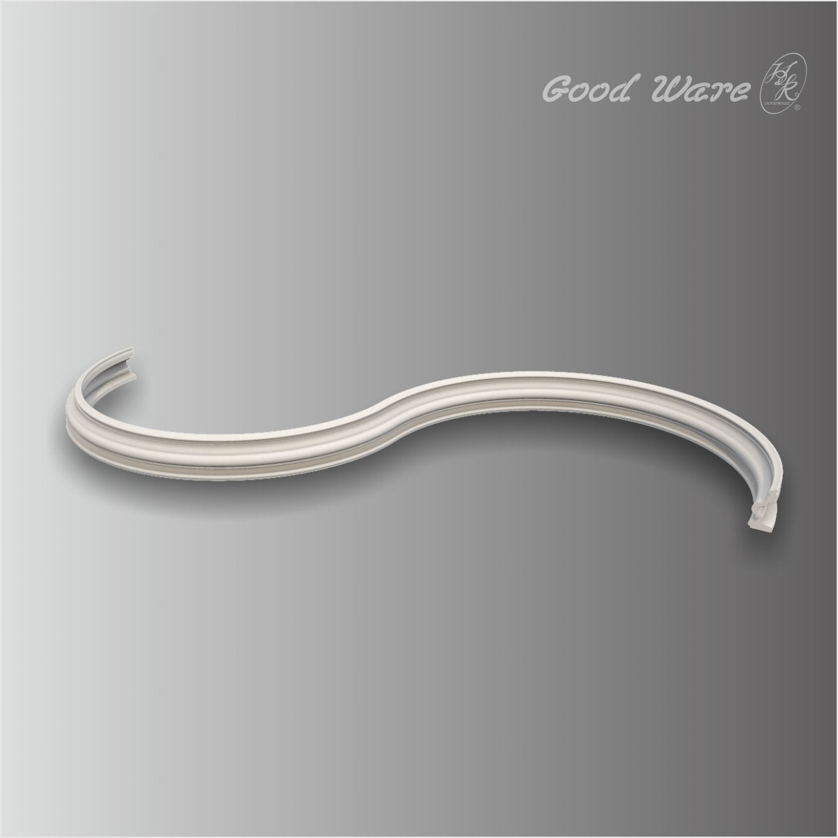 Interior flexible arch trim molding, 96-11/16”L X 1-11/16”H X 13/16”D in size. Flexible molding is a uniquely formulated product that can be cast to match a large number of standard wood and composite profiles currently available on the market. Our most recent improvements to flex molding make it stronger, more durable and greatly improve its stain ability.