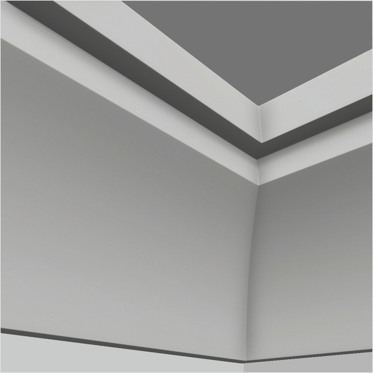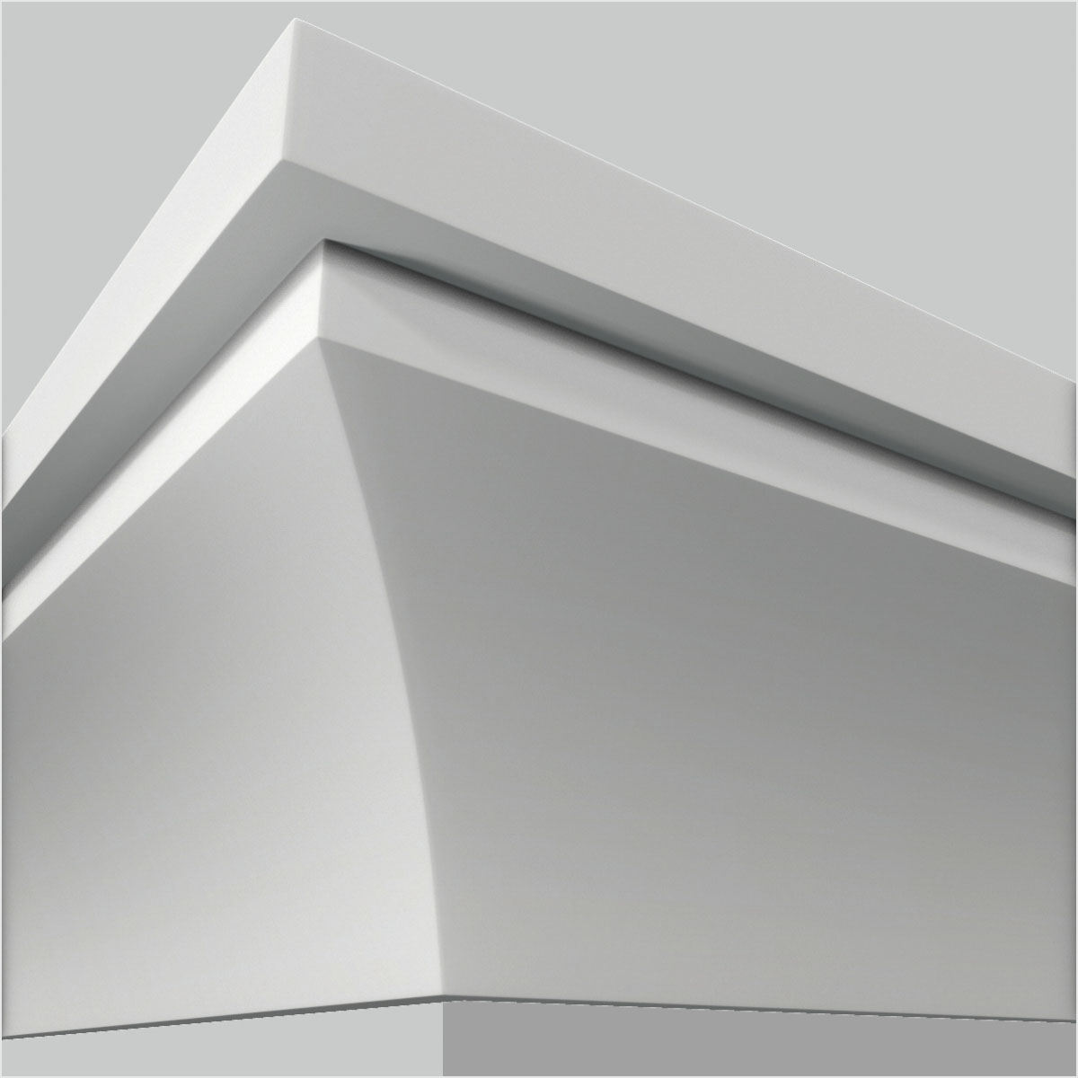 Polyurethane large classic plain crown molding, 11-13/16”H X 7-7/8”W X 94-1/2”L in size and with a breadth of 14”. This gigantic scale molding is consisted of a smooth and sleek deep cove combined with a step trim creating a dimensional molding. All our Goodware moldings are pre-primed and customized.