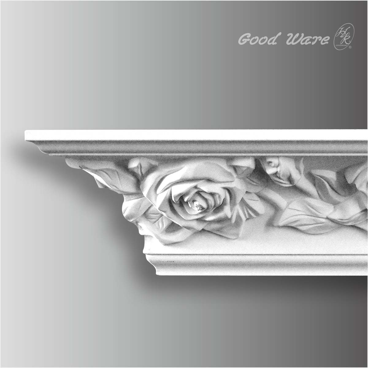 Large polyurethane floral crown molding displays high profile exquisite floral and makes the cavemen animated expression. This floral crown molding comes factory-primed, ready to faux finishes according to your personal preference or the scale and style of your space and furnishings. Our Goodware floral crown molding is open to stain,paint achieving fabulous finish. Goodware moldings are easy to install, resistant to cracking, crumbing or warping and fears no insects making its applications scenarios unbond to regions or whether.