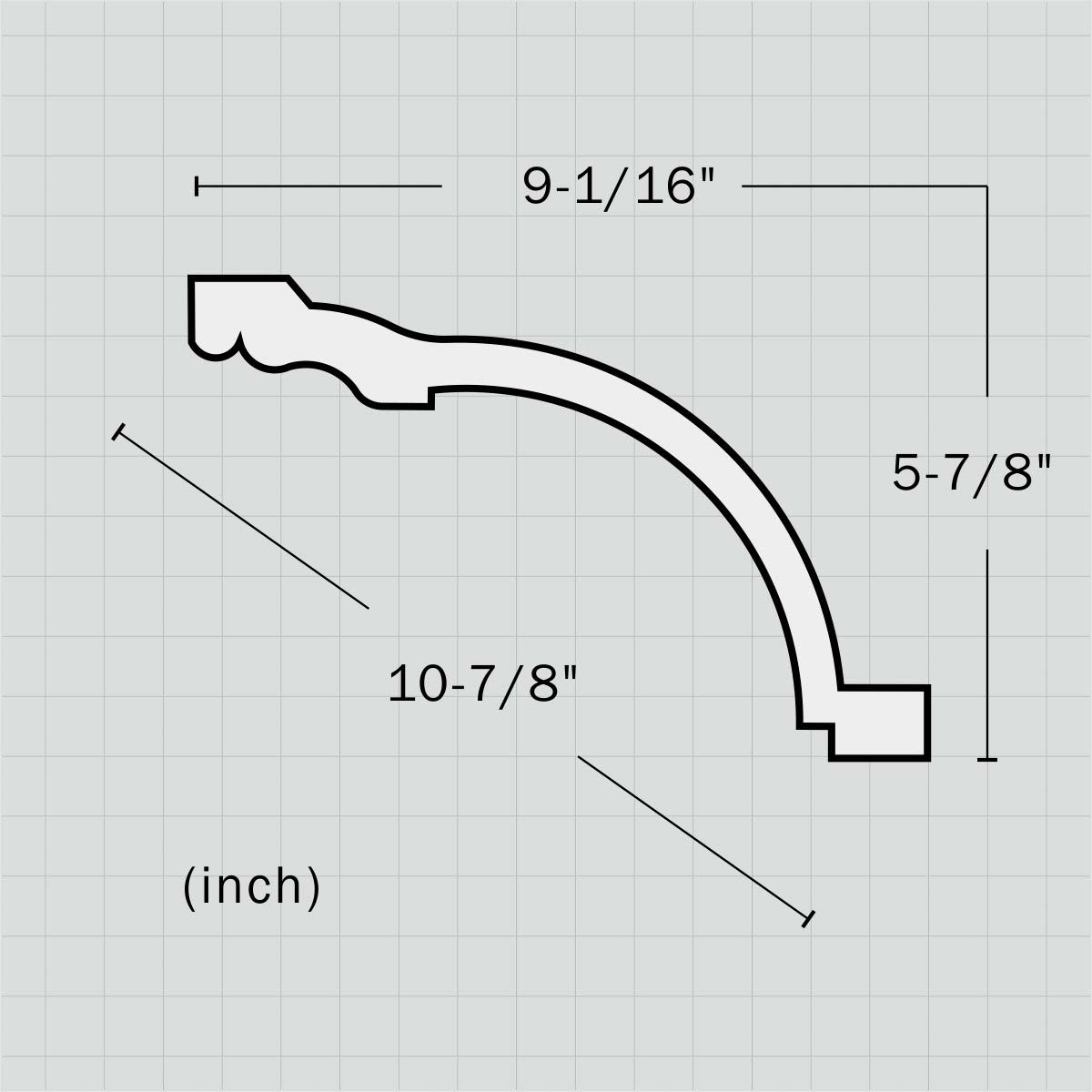 Polyurethane 10 inch classic crown molding, 5-7/8”H X 9-1/16”W X 94-1/2”L in size and with a breadth of 10-7/8”. This large profile molding deploys a steep formed cove design and comes pre-primed ready to faux finishes or stain. All our Goodware moldings are pre-primed and customized.