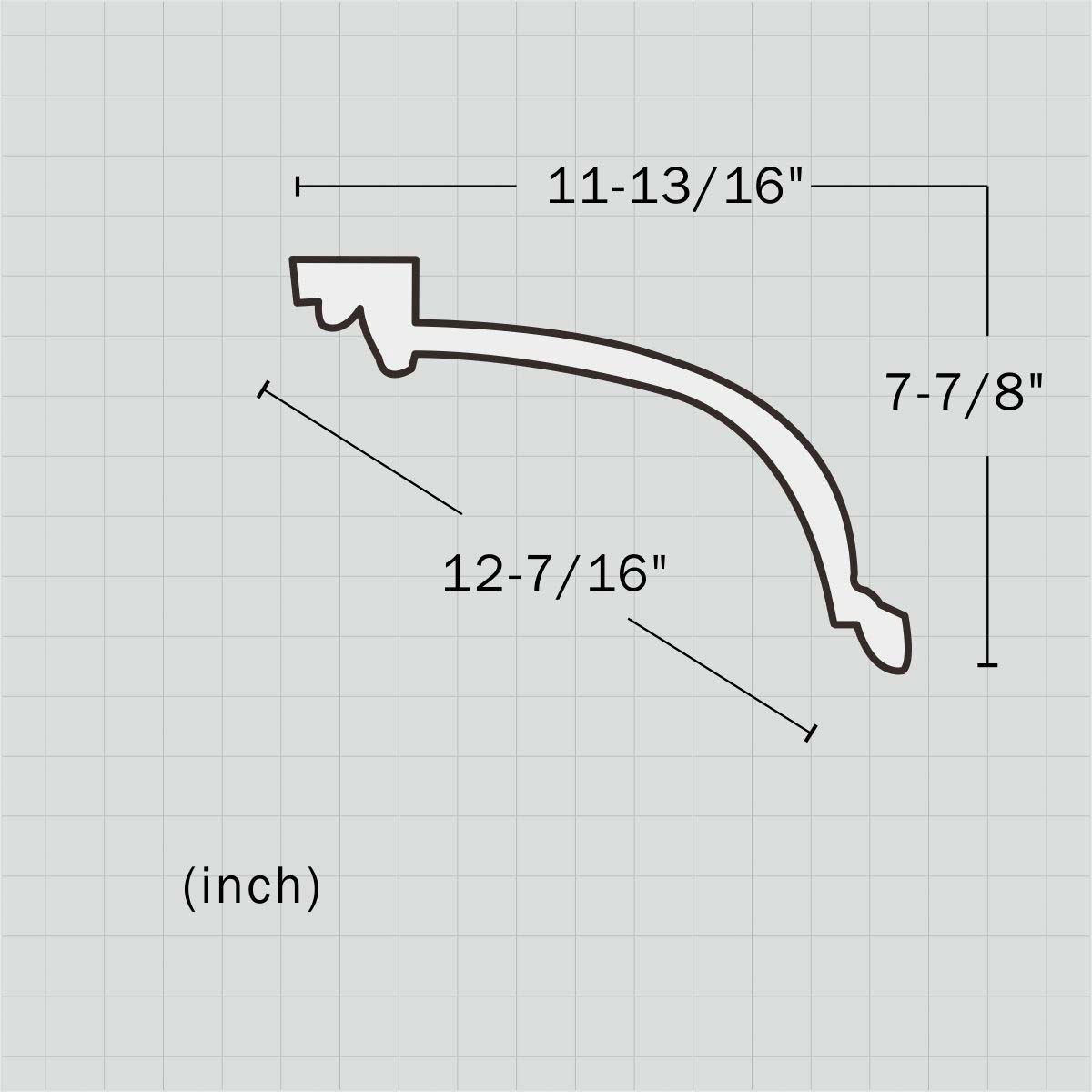 Polyurethane 12 inch diy crown molding, 7-7/8”H X 11-13/16”W X 94-1/2”L in size and with a breadth of 12-7/16”. This gigantic molding allocates a big proportion to this deep thin cove with a clean seamless look perfectly well for ambiance creation. All our Goodware moldings are pre-primed and customized.