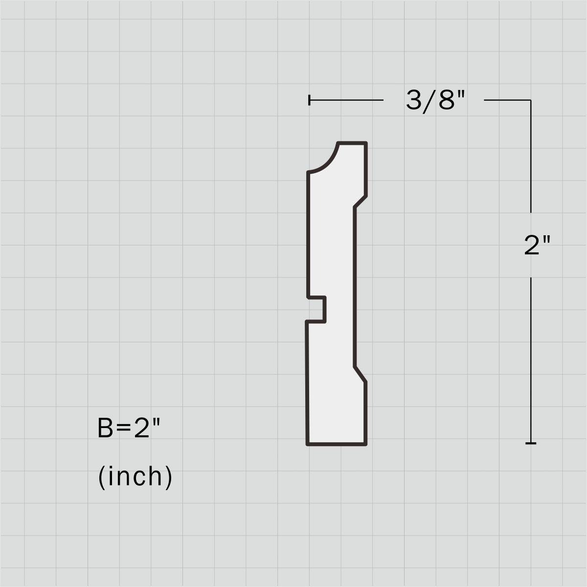 Polyurethane 2 inch flat trim molding, 2”H X 3/8”W X 94-1/2”L in size. This small size molding manipulates two sections with a lightly concave line to create a visual illusion making this molding in riches depth. All our Goodware moldings are pre-primed and customized.