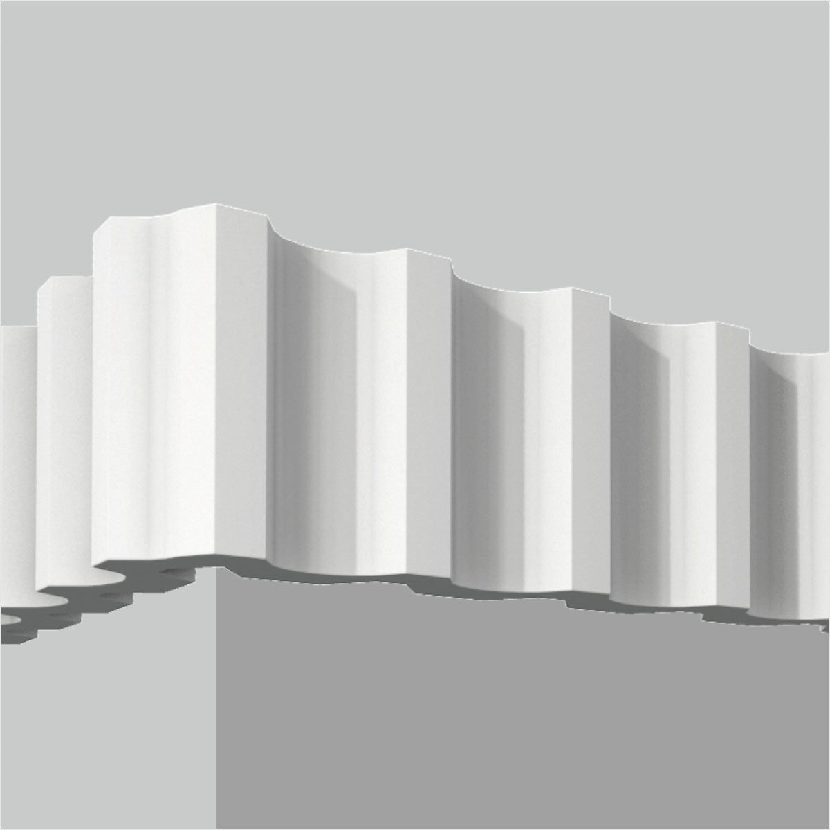 Polyurethane 3 inch wall molding frames, 3-1/2”H X 1-3/16”W X 94-1/2”L in size. This medium small size molding demonstrates a series of elegantly crafted waving shape figures deriving from ancient Chinese architecture element making this molding decorative and aesthetics. All our Goodware moldings are pre-primed and customized.