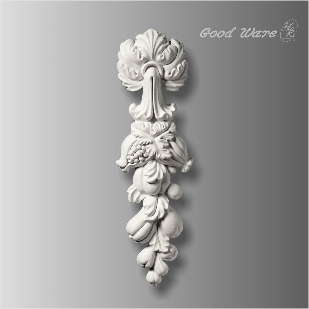 Polyurethane accent pieces for furniture, 16-1/8”H X 4-13/16”W X 1-9/16”D in size. With the elements of nature as decoration, and use various designers of plant sculpture, to form a bouquet of flowers. It can be decorated in some of the more biased Pastoral style building to add a touch of elegance and embellishment to any working project. Our H&K Goodware applique and onlay products are open to be customized. Learn more our Custom Ornamental mouldings Design Service.