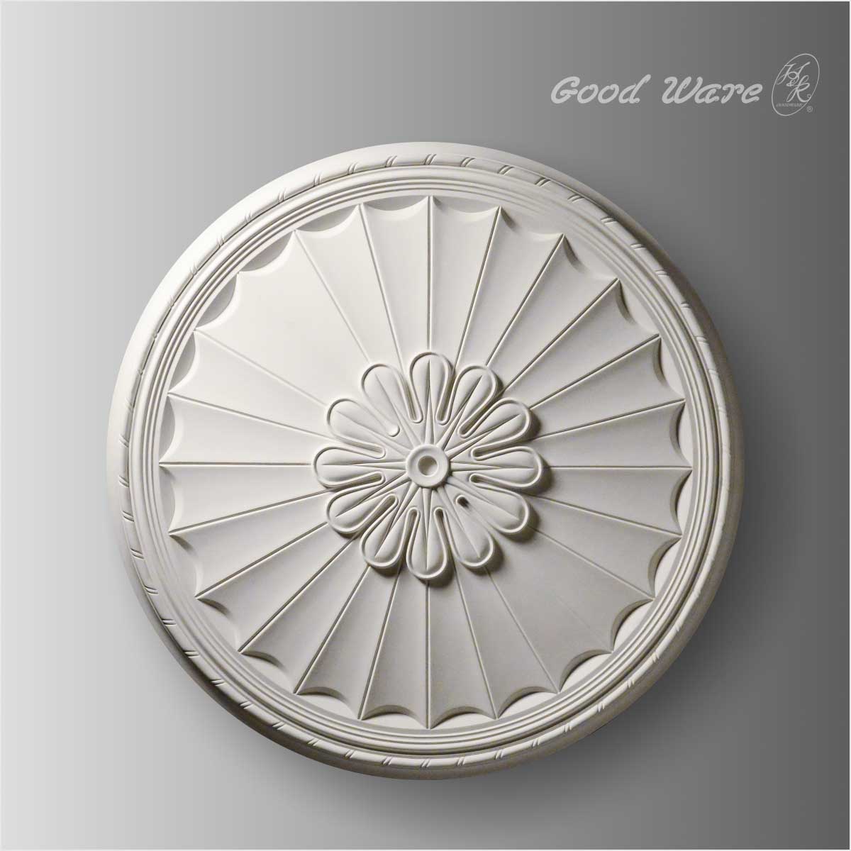 Polyurethane ceiling medallion wall decor, 35-13/16”D in size. This ceiling medallion wall decor adopts a multiple layers design decorated with radiant shells and elegant flower in the middle. So this medallion is ideal for decorative purpose when applied to walls. And due to the application of polyurethane, it will remove large amount of time and money on your decoration list. Our Goodware ceiling medallion are open to be customized.