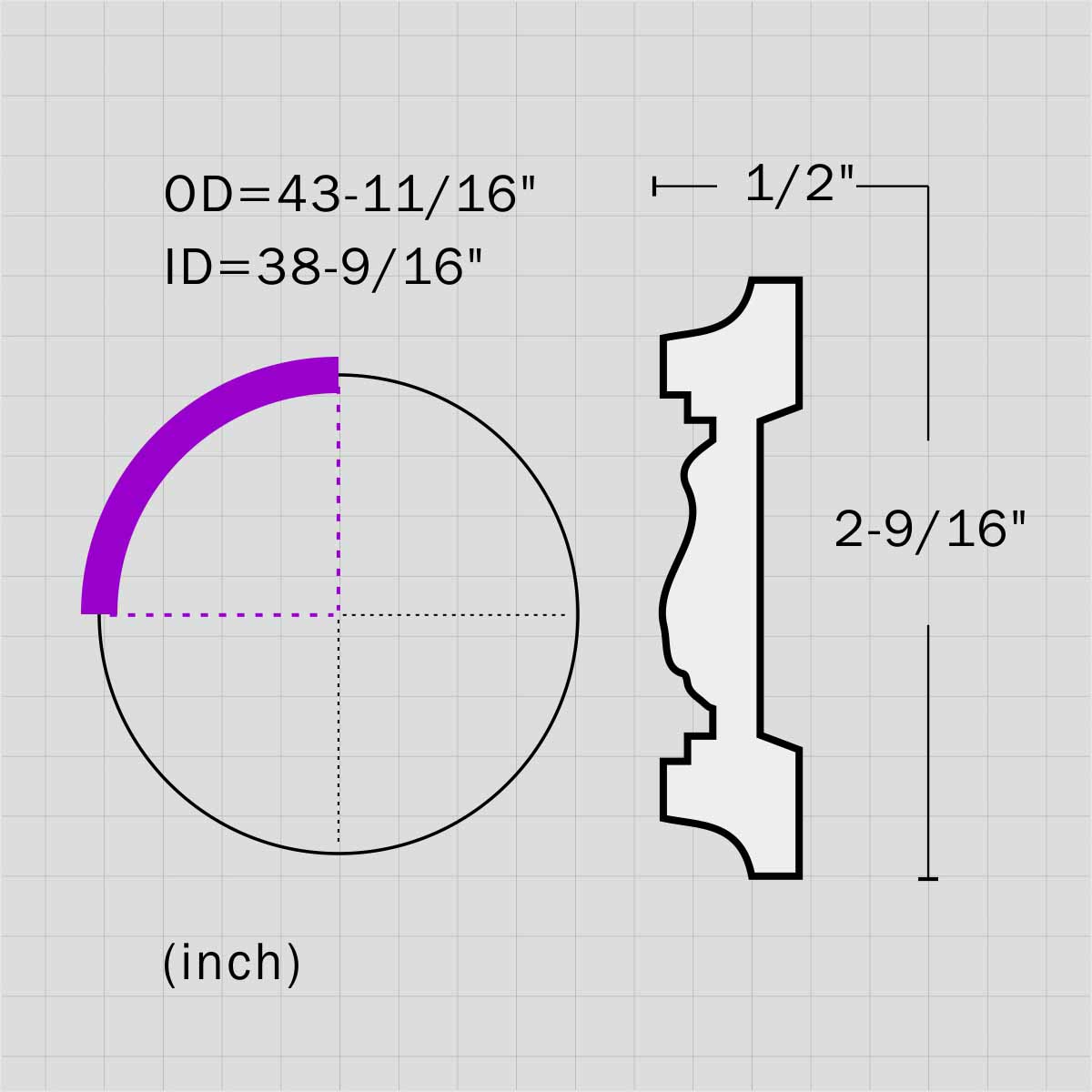 | Dimension | OD 1110mm (43-11/16”) | |