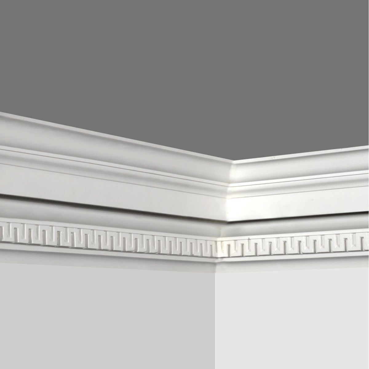 Polyurethane cornice decorative molding, medium large size molding contains a flat cove with no special ornaments but some regularly arranged dentils making this molding plain and sleek suitable for sharp relief. This series of Goodware molding refers to special patterns and specification, subjection to customization is attached.