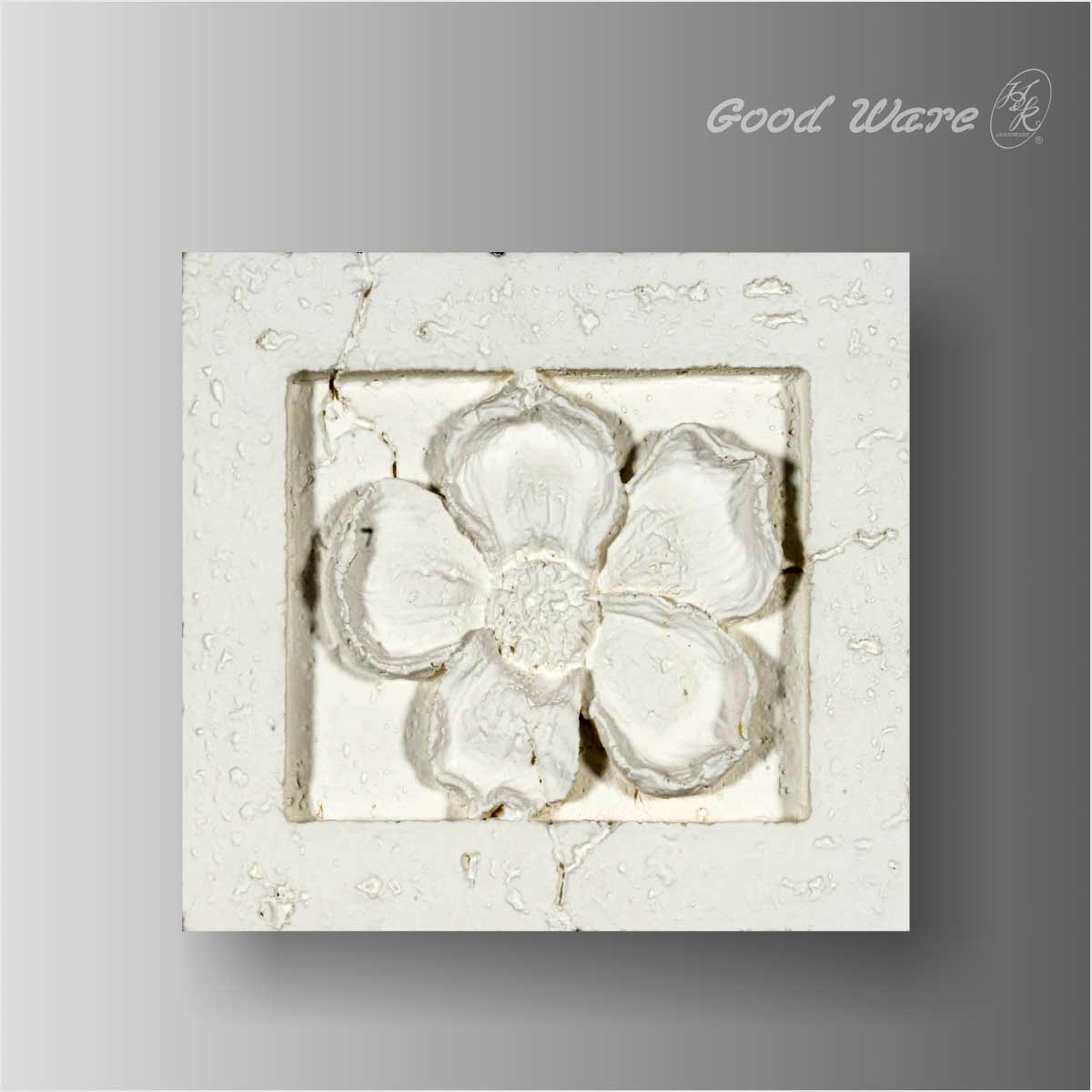 Polyurethane decorative bathroom wall panels, 8-1/2”L X 10-1/4”W X 1-3/16”D in size. This faux stone relief wall panel suggests the actual impression of stone both in texture and touch sphere. This white faux stone panel embeds delicate flower in elegant details making it highly ornamental. It can be applied to the walls, ceilings, it can also be found in the decoration of doors and furniture fronts. Our H&K Goodware relief wall panels are open to be customized.