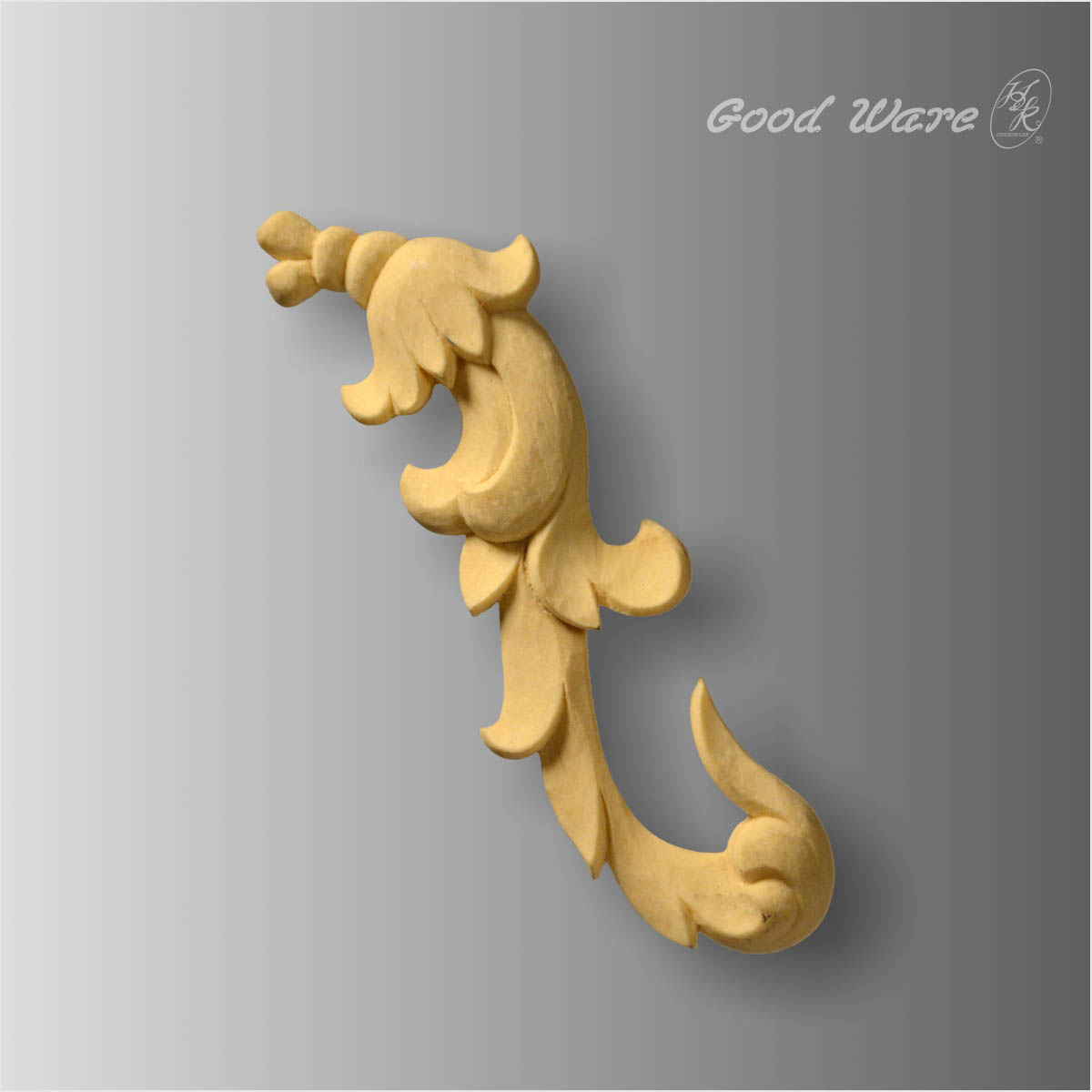 Polyurethane decorative trim for cabinets, 6-11/16”H X 5-7/8”W X 11/16” in size. This imitation wood delivers the actual impression of wood both in grain and touch. The symmetrical wheat ears are crafted by artisan with hand making this imitation part vigorous. It can be applied to windows, wardrobe, ceilings, cabinets and all the visible sections. Our H&K Goodware imitation wood products are open to be customized.