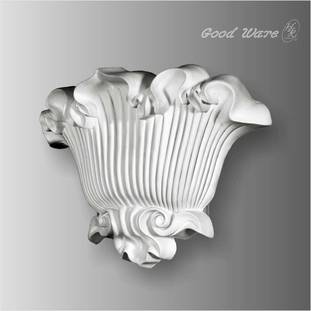 Polyurethane elegant floral wall sconces, 9-13/16”H X 14-3/16”W X 3-3/4”W in size. The small scale wall sconce takes the impression of shell decorated with florals and flowers. This wall scone is crafted with exquisite and intricate details creating it smooth and clean. Our wall sconce shall not be applied to structural support but can add elegant and vivid touch to the wall. All our Goodware moldings are pre-primed and customized.