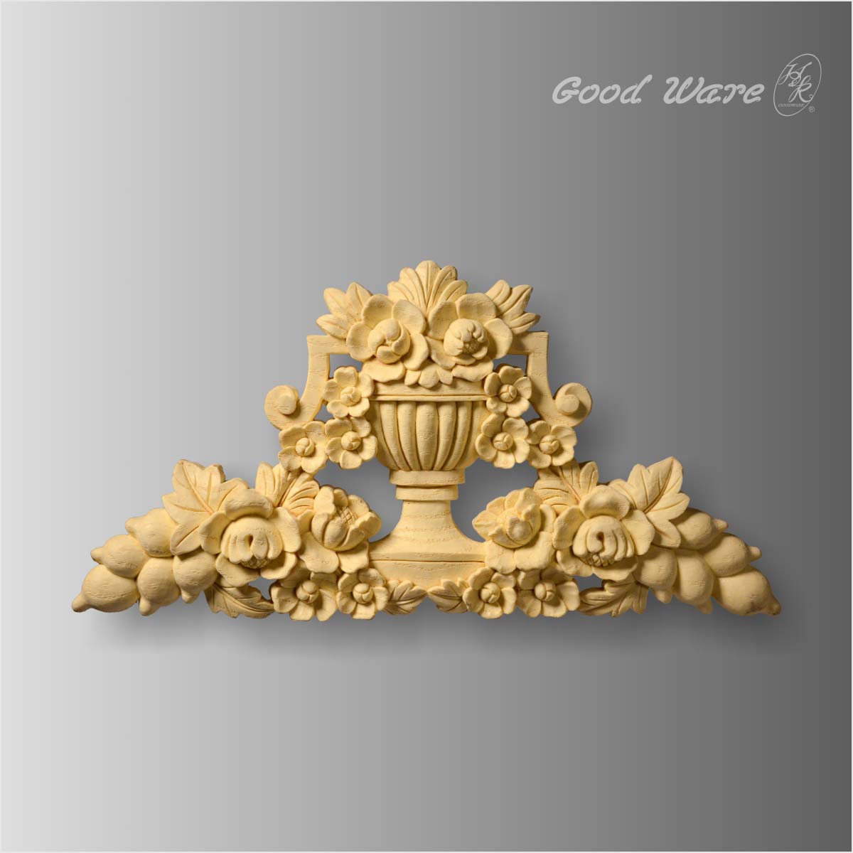 Polyurethane faux wood rose furniture appliques, 9-1/8”H X 17-1/2”W X 1-3/16”D in size. This artificial wood imitates the actual impression of wood in both grain and touch sphere. The splendid and flourishing flowers are thriving in the delicate parterre creating an auspicious scene. And the exquisite elegant details are hand carved by our artisan expressing real texture of the wood. Our H&K Goodware imitation wood products are open to be customized.