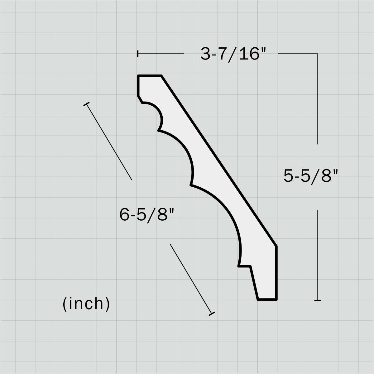 Polyurethane kitchen cabinet cornice moulding. Whether for functional or decorative use, crown molding always adds an extra touch to any room. Custom design crown moldings are available. This classic crwon molding is commonly used with 10′-11′ ceilings. The size of this crown molding is 5-5/8”H X 3-7/16”W X 94-1/2”L, Breadth:6-5/8”.