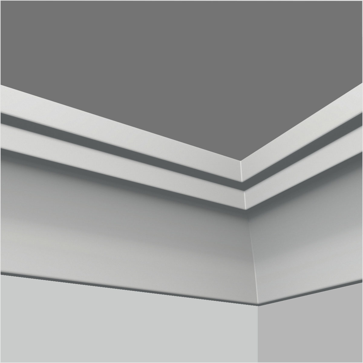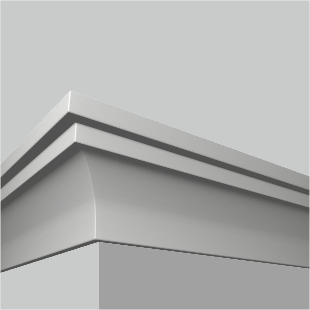 Polyurethane modern 3 inch crown molding, 2-5/16”H X 2-5/16”W X 94-1/2”L in size and with a breadth of 3-3/8”. This small scale molding introduces a transitional gentle cove combined with a little deep cove as the trim side making it a great chioce of ceiling to wall transition molding. All our Goodware moldings are pre-primed and customized.