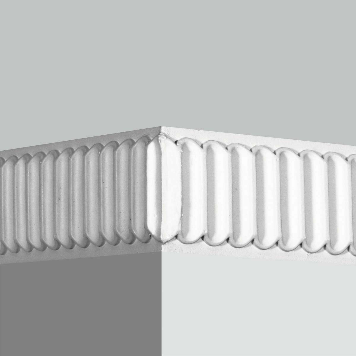 Polyurethane modern chair rail molding is 2-1/16”H X 7/16”W X 94-1/2”L with flower:1/2”. Made from high density polyurethane, this modern chair rail molding is gracefully crafted knots and vertically arranged them with exquisite details. Our Goodware molding can be a unique product customized by you.