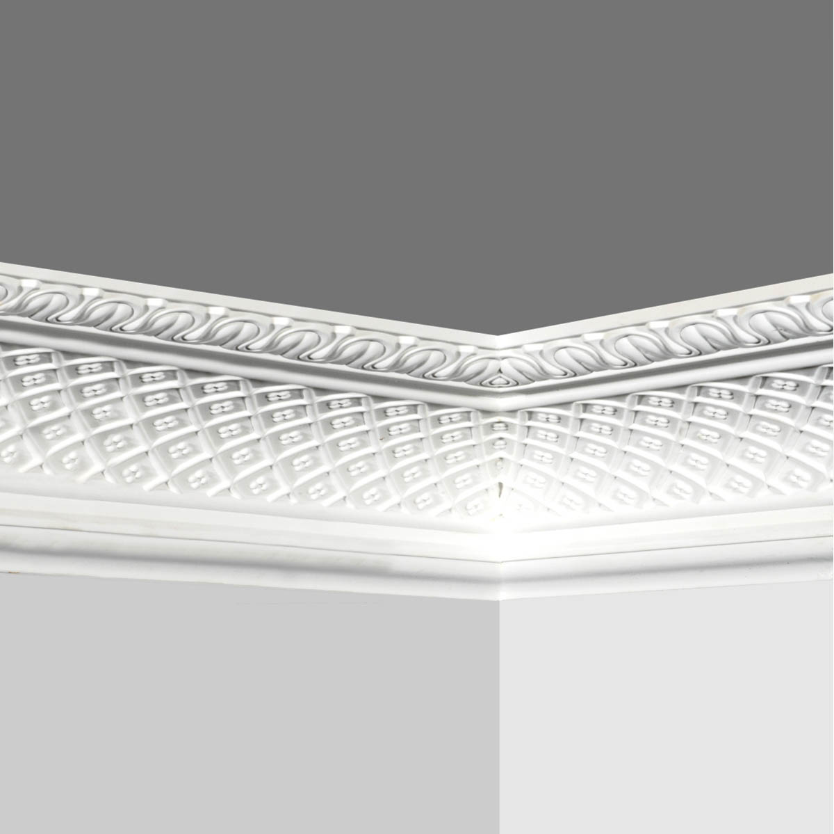 Not only does our decorative ornamental polyurethane molding provide an authentic appearance, it is a Green building product. With over 100 different architectural molding designs from which to choose we are certain to either have the molding you need. Detailed installation instructions can be found on our installation page, but our crown molding installs with adhesive and screws and it miters just like wood molding