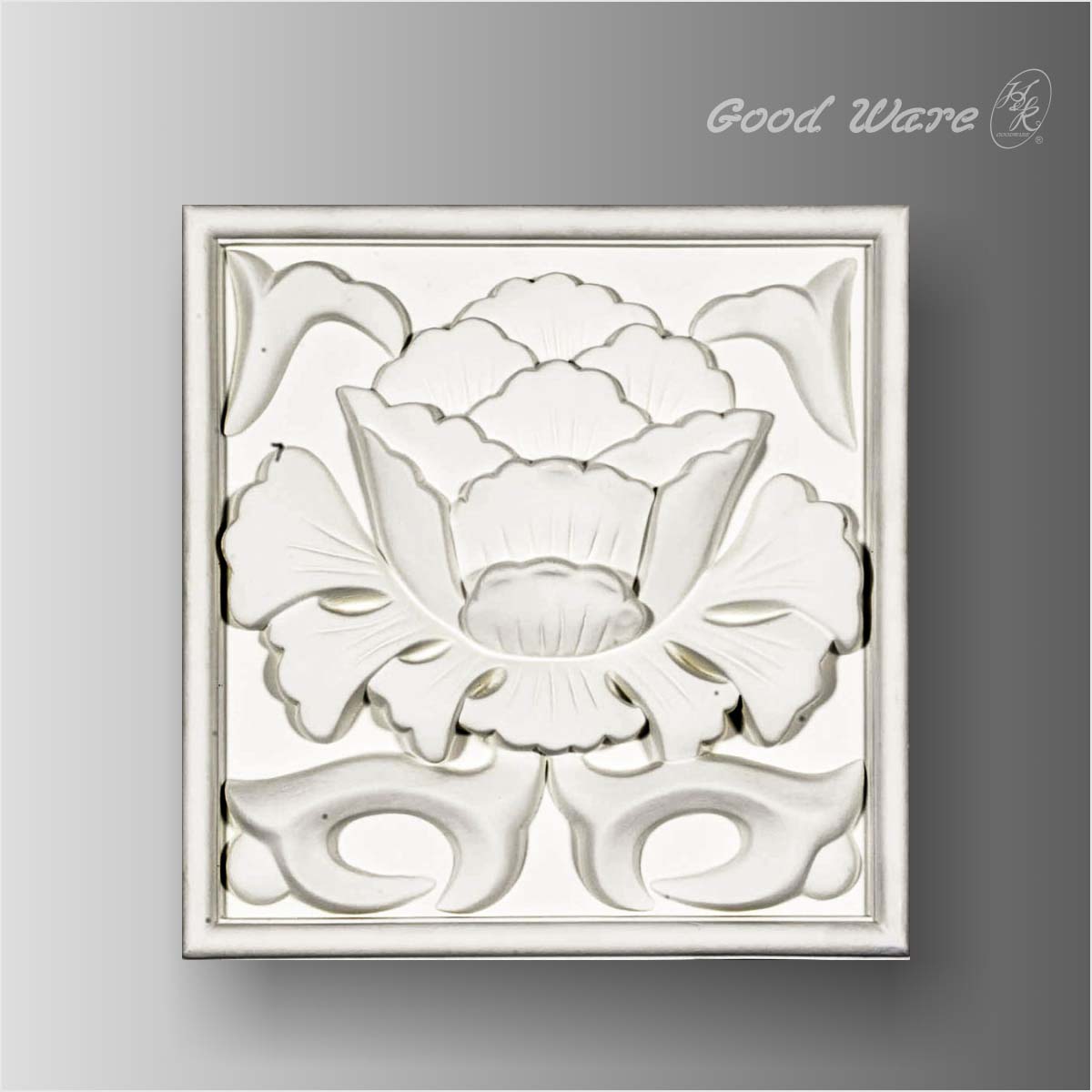 Polyurethane outdoor decorative wall panels, 9-1/2”L X 9-1/2”W X 1”D in size. This square relief wall panel utilizes a smooth and clean surface combined with fabulous and stunning lotus in elegant details. This is a supplementary block for the combination of WE-2415 and WE-2413. It can work alone to decorate small space and in combination to make the walls of house and public sites attractive and fantastic. Our H&K Goodware relief wall panels are open to be customized.