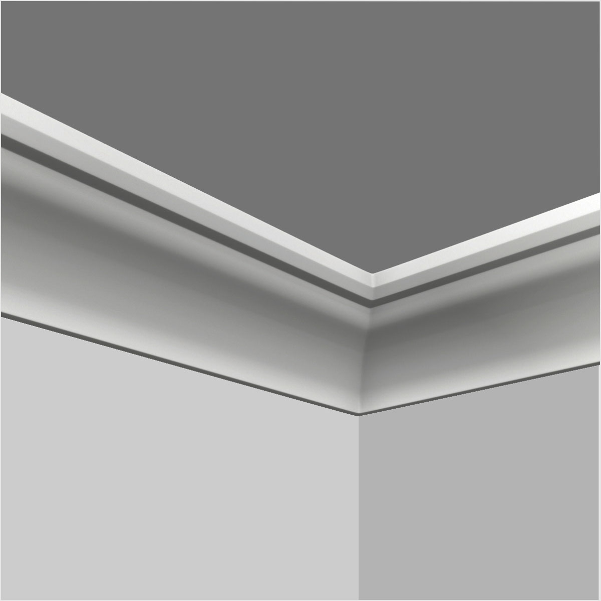 Polyurethane plain ceiling crown molding for sale, 3-1/2”H X 4-7/16”W X 94-1/2”L in size and with a breadth of 5-5/8”.This medium-small molding combines a steep cliff on side with a gentle and sleek surface making this molding sharp-relief and space enlargement. All our H&K Goodware moldings are pre-primed and customized.