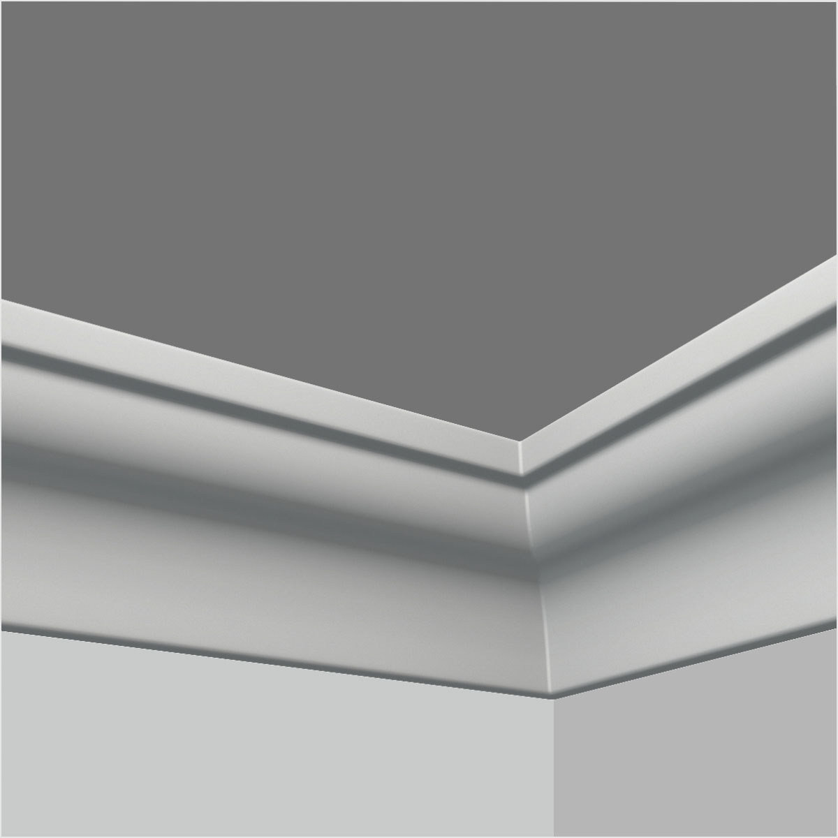 Polyurethane plain classic interior cornice moulding, 2-3/16”H X 1-13/16”W X 94-1/2”L in size and with a breadth of 2-7/8”. This small tiny molding deploys a steep formed dual coves design and comes pre-primed ready to faux finishes or stain. All our Goodware moldings are pre-primed and customized.