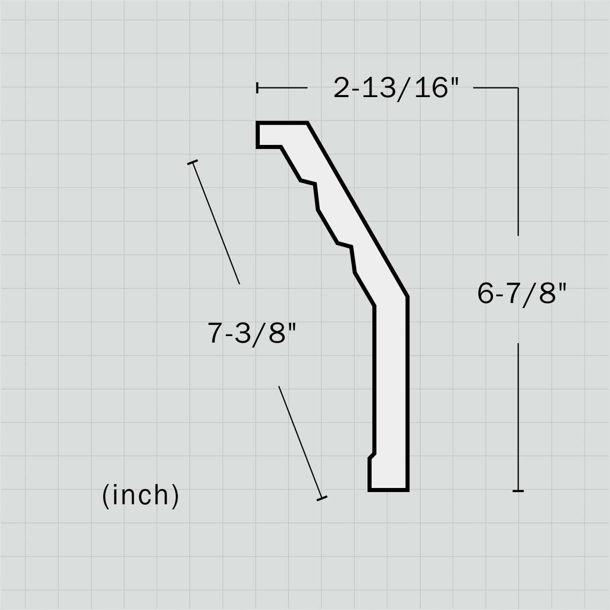Polyuethane plain crown moulding for cabinets. Moldings can make any project look custom. When applied to kitchen cabinetry in particular, these architectural details can help enhance the most basic cabinet style. Custom design crown moldings are available. This classic crwon molding is commonly used with 10′-13′ ceilings. Size: 6-7/8”H X 2-13/16”W X 94-1/2”L.
