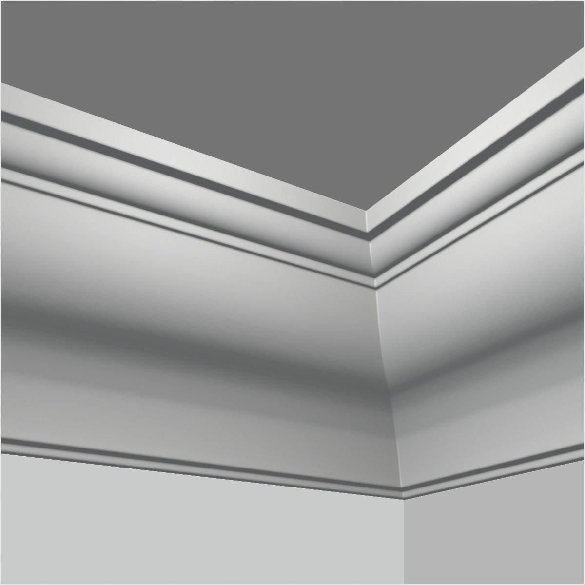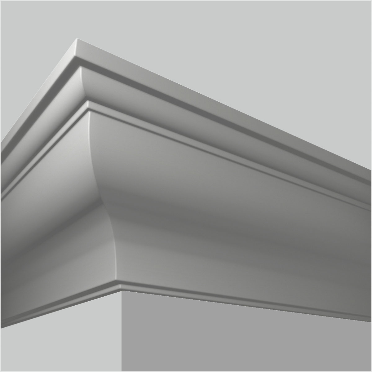 Polyurethane plain standard crown molding, 7-3/4”H X 7-7/8”W X 94-1/2”L in size and with a breadth of 11-5/8”. This large scale molding demonstrates a waving cove decorated with two trims on both sides and this molding goes into sharp relief style of our molding lines. All our Goodware moldings are pre-primed and customized.
