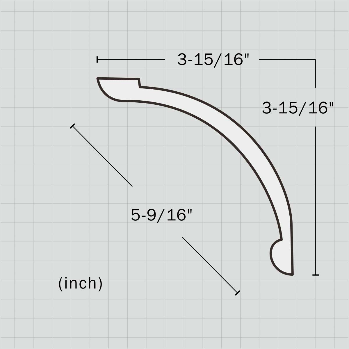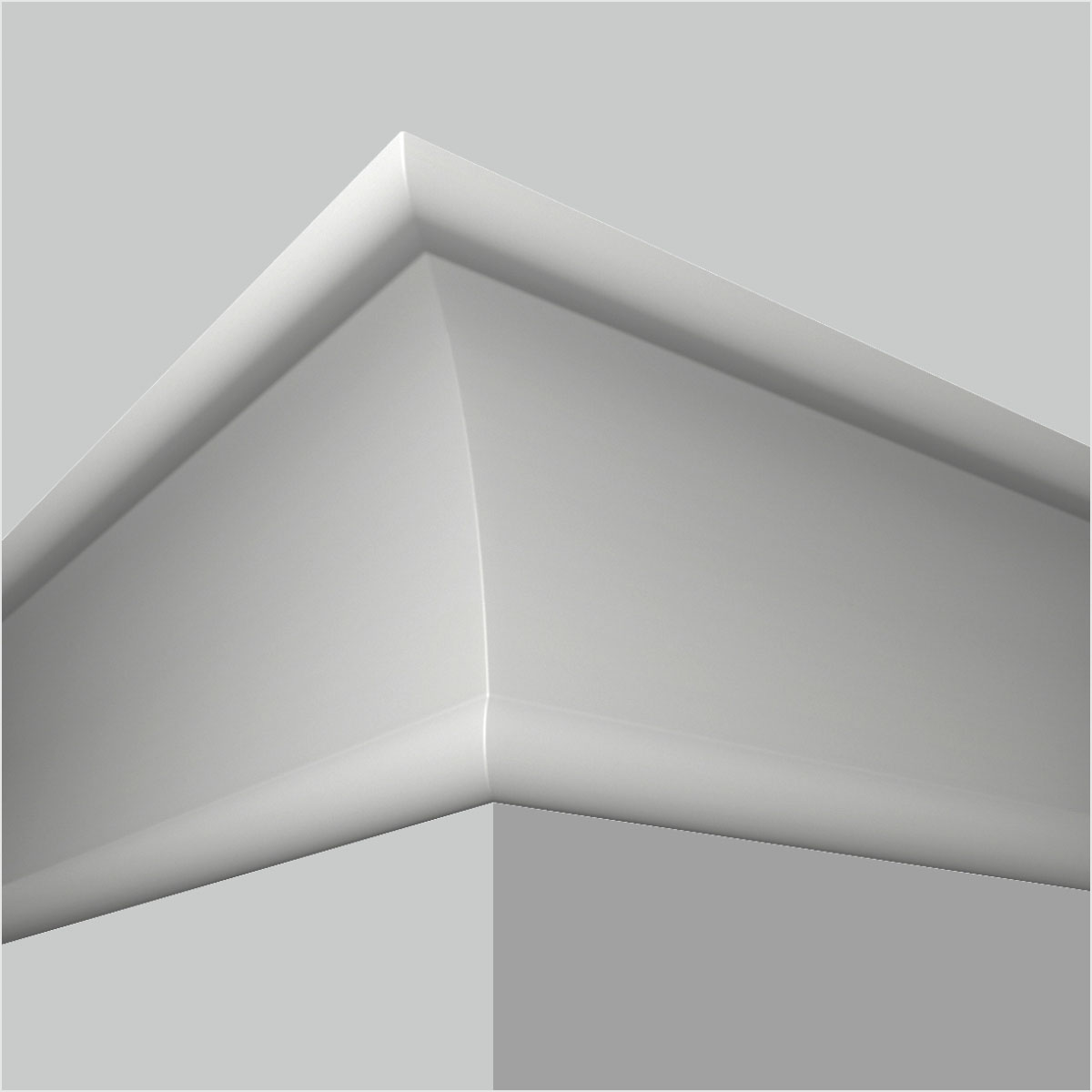 Polyurethane plain white cove molding, 3-15/16”H X 3-15/16”W X 94-1/2”L in size and with a breadth of 5-9/16”. This medium scale plain molding utilizes a single smooth gentle cove. With its clean sleek surface it will enlarge the visual effect of a narrow space. All our Goodware moldings are pre-primed and customized.