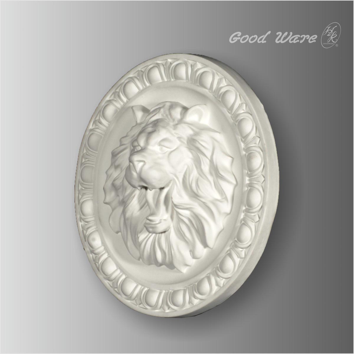 Polyurethane round lion wall decor plaques, 7-11/16”H X 7-11/16”W X 1-3/8”D in size. This small architectural wall decoration is molded after historical design crafted with roaring lion in vivid touch and impression making this molding decorative. Applied alone or combined with other decorative elements for either wall or corner, this applique can enhance the ambiance instantly. Our H&K Goodware wall decorations are open to be customized.