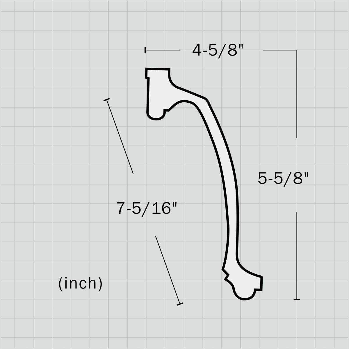 Polyurethane simple 7 inch crown moulding, 5-5/8”H X 4-5/8”W X 94-1/2”L in size and with a breadth of 7-5/16”. The medium large profile molding introduces a thin and gentle cove combined with a steep step trim creating a sleek while dimensional molding for transition decoration. All our Goodware moldings are pre-primed and customized.