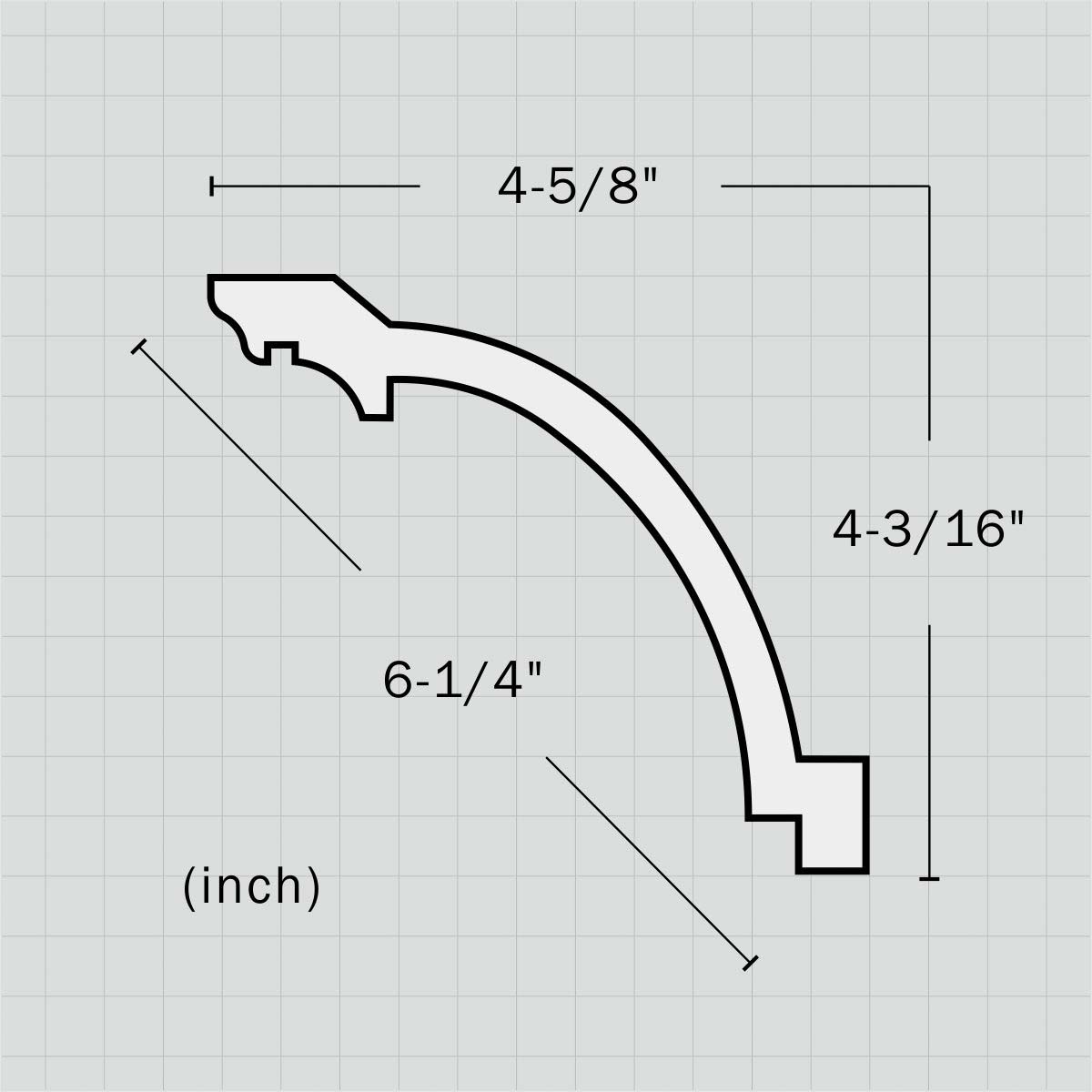 Polyurethane simple cove plain molding, 4-3/16”H X 4-5/8”W X 94-1/2”L in size and with a breadth of 6-1/4”. This small scale molding contains a thin deep blend cove decorated with trims on both sides reflecting great shadows and full dimensional sense making this molding of extreme decoartive value. All our Goodware moldings are pre-primed and customized.