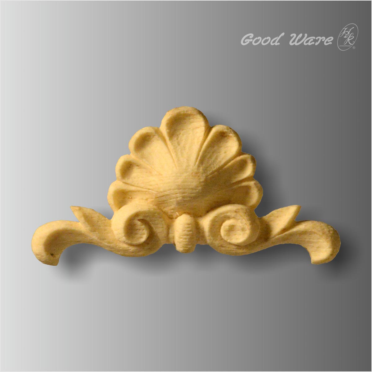 Polyurethane small faux wood kitchen appliques, 2-13/16”H X 4-5/16”W X 9/16”D in size. This expressive wood imitation describes the actual impression of wood in both grain and touch sphere. This artificial wood is crafted with shell combined with florals in exquisite details making it decorative. This series of parts can be decorated almost every corner of your room. Our H&K Goodware imitation wood products are open to be customized.
