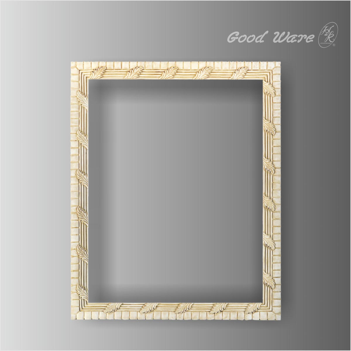 Polyurethane square antique picture frames for sale, 30-1/8”H X 24-3/16”W for outside frame and 26”H X 20-1/16”W for inside with a depth of 1-3/16”D in size. This mirror frame adopts classic square frame decorated with carved dentils and lines combined with elegant flowers. It can be placed vertically or horizontally based on your preference, and it will breathe new life into your wall space with this wall mirror frame. Our H&K Goodware mirror frames are open to be customized.
