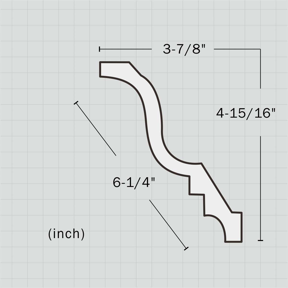 Polyurethane traditional crown molding for bathroom is 4-15/16”H X 3-7/8”W X 94-1/2”L and a breadth of 6-1/4”. Its usually applications go to 9′-10’ceilings houses. Our traditional crown molding for bathroom combines stepped curls with outside protruded cove. Our H&K Goodware molding can be a unique product customized by you.