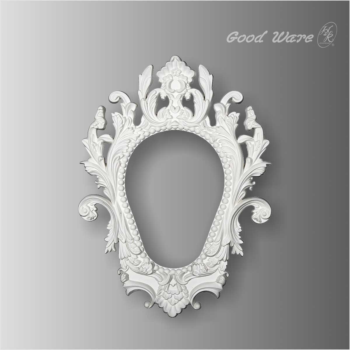 Polyurethane victorian mirror frame for sale, 39-3/8”H X 29-1/2”W for outside frame and 20-7/8”H X 14-15/16”W for inside with a depth of 1-3/8”D in size. This mirror frame utilizes the ovel shape crafted with dense and fabulously flowers in exquisite and fantastic details making it highly decorative. This elegant yet wonderfully mirror frame can reflect on the beauty of the simple things in life. You can place this mirror on your bedroom wall or by your closet for a crisp view of your appearance while enjoying its whimsical charms. Our H&K Goodware mirror frames are open to be customized.