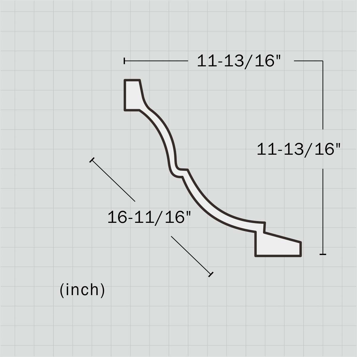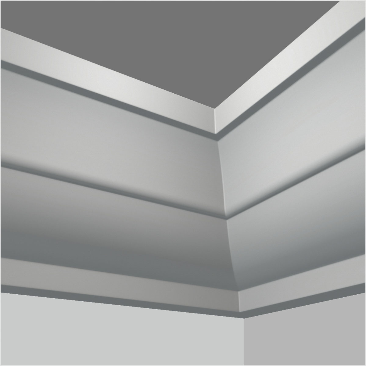 Simple polyurethane ceiling moulding for sale, 11-13/16”H X 11-13/16”W X 94-1/2”L in size and with a breadth of 16-11/16”. This large size molding involves two seemingly connected sections which are made of a cove and curled step making this part great sense of depth and layers. All our Goodware moldings are pre-primed and customized.