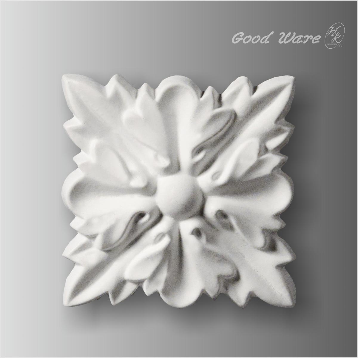 Square polyurethane rosettes for cabinet, 2-1/4”H X 2-1/4”W X 1/2”D in size. This square shape applique belongs to a series of small size supplementary device. Simple element and simple craftsmanship in no simple hand carve from our professional artisan make this decorative applique of high decorative value. It can be applied to wardrobes, cabinets, ceilings and furniturings. Our H&K Goodware appliques and onlays products are open to be customized.