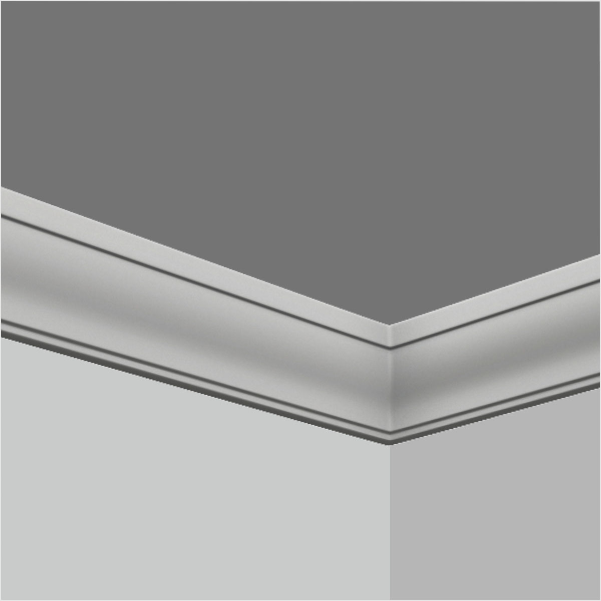 Polyurethane wall chair rail moulding trim for sale, 1-7/8”H X 1-1/16”W X 94-1/2”L in size. This small size molding comes with a triple sections design with a huge waving cove in the middle separating stepped trims creating a strong sense of dimension ideal for ceiling to wall decoration. All our Goodware moldings are pre-primed and customized.