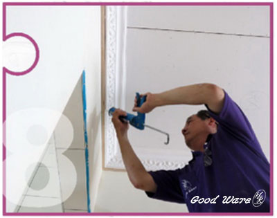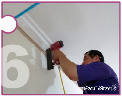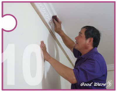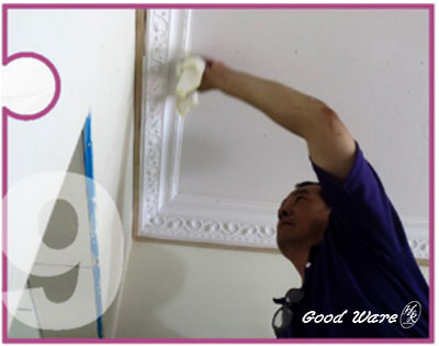 9. After fix the molding on the wall, wipe out the white glue and silicone which was on the surface of the molding/wall.